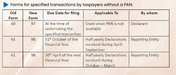 | 1. | FORM NO. 60 | Form for a declaration to be filed by an individual or a person (not being a company or firm) who does not have a permanent account number and who enters into any transaction specified in rule 114B |