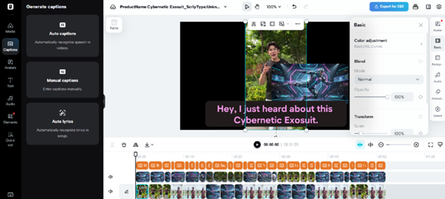 - Once generated, manually edit captions, add text, and properly adjust size, color, and alignment.